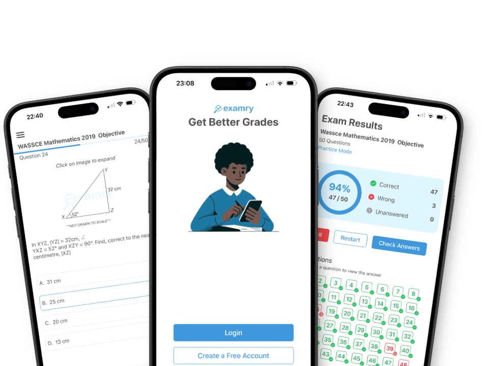 With Examry, exam prep fits your schedule. Access past papers, detailed explanations, and unlimited practice—whether you're online or offline. Study on your terms and ace your WASSCE with confidence
